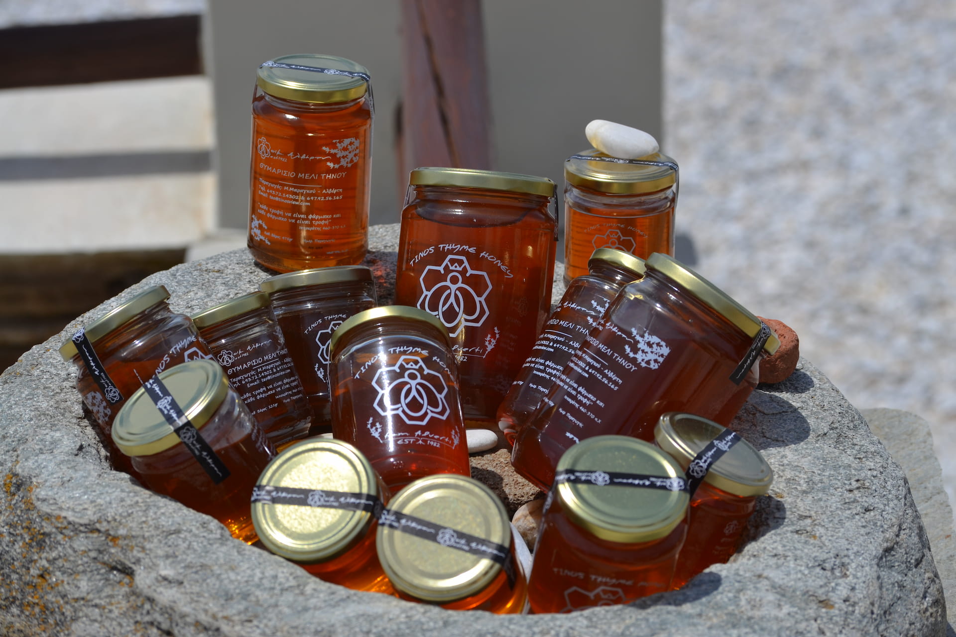 Το θυμαρίσιο μέλι Τήνου, η χρυσαφένια λιχουδιά, που παράγεται από την οικογενειακή μας επιχείρηση και συλλέγεται από τις μέλισσες μας, μια φορά τον χρόνο, από την τοποθεσία της “Έξω Μεριάς Υστερνίων-Πανόρμου Τήνου” , βρίσκεται στα χέρια σας. Συλλέγεται από τις παραπάνω περιοχές, στις οποίες δεν υπάρχει ανθρώπινη δραστηριότητα (αγροτικές καλλιέργειες) ή άλλης μορφής παρέμβαση, γι’ αυτό ανήκει στην κατηγορία των οικολογικών – βιολογικών προϊόντων.